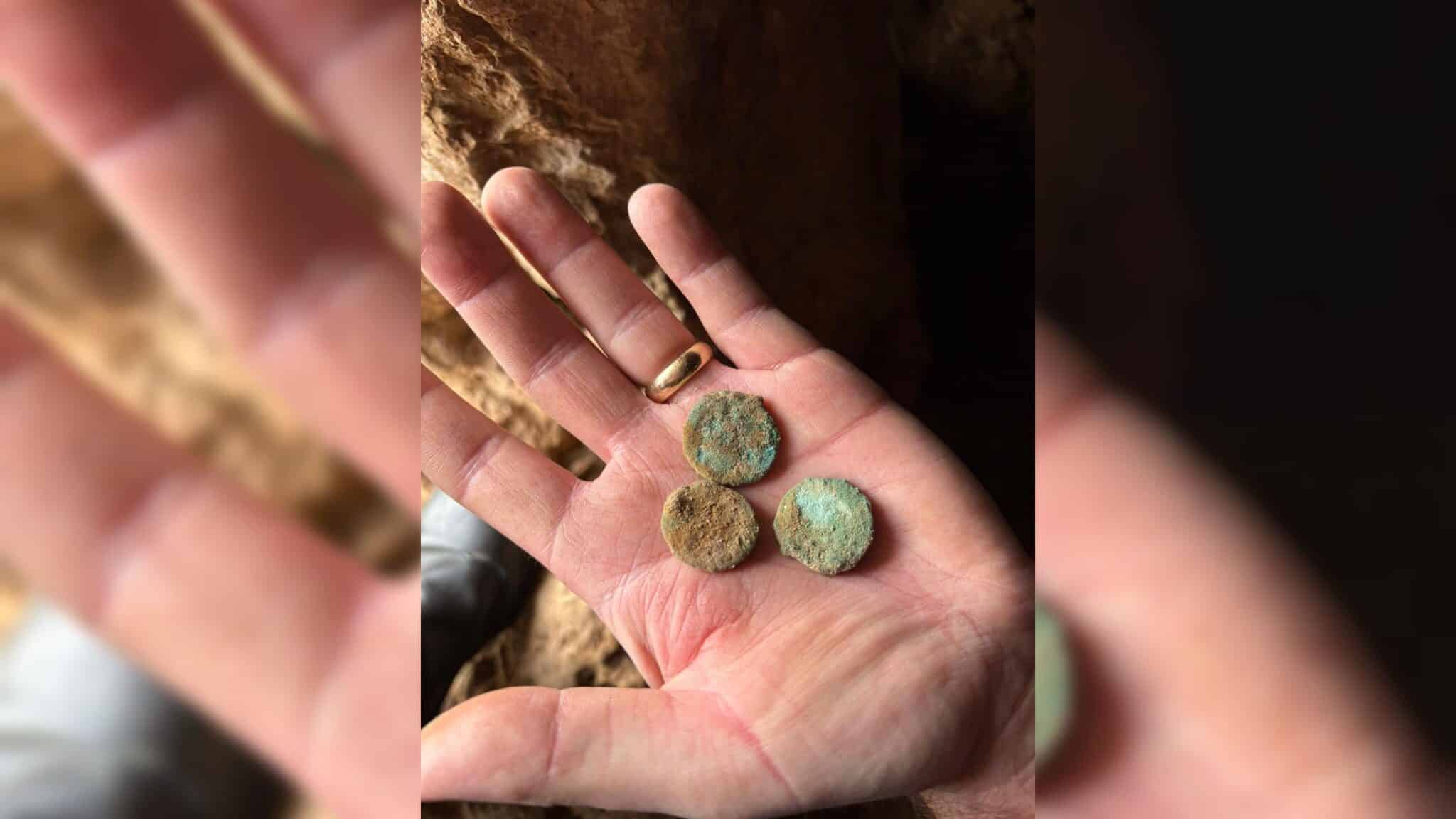 "סבא, תראה מה מצאנו", קראו בהתרגשות נכדיו של שגריר ארצות הברית בישראל, מייק האקבי, בעת ששלפו חמישה מטבעות עתיקים ממערת מסתור שהתגלתה לאחרונה סמוך ליישוב נעלה שבבנימין.