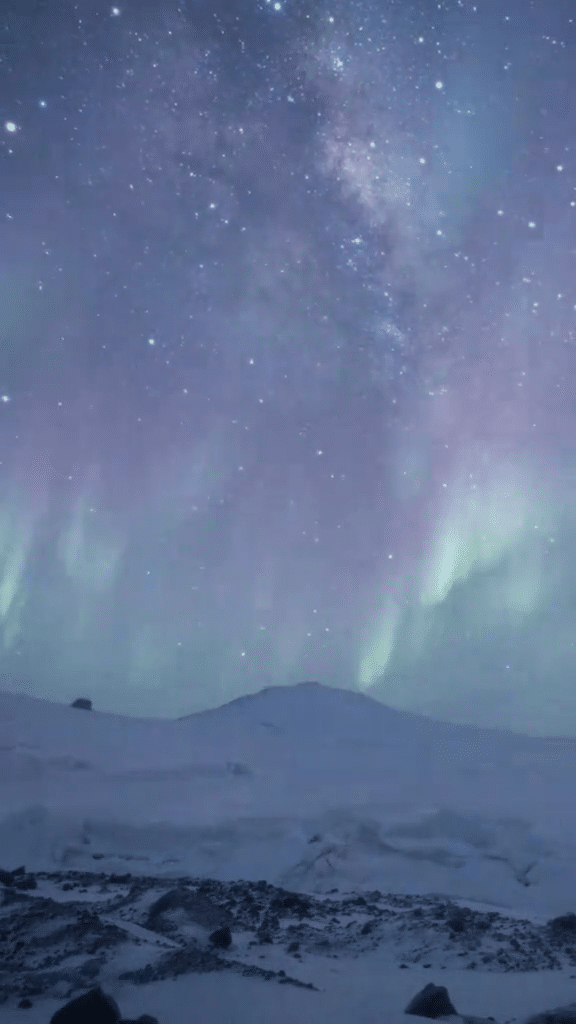 בלב הקרח והשקט המוחלט של אנטרקטיקה, מצלמה בודדת תיעדה מחזה שקשה להאמין שהוא אמיתי. שביל החלב נמתח מעל האופק, ובו־זמנית הזוהר הדרומי צבע את השמיים בגלים של אור ירוק וסגול. מפגש נדיר בין יקום לקרח, כזה שמתרחש רק בתנאים קיצוניים — והופך לתיעוד חד־פעמי שמותיר את הצופים פעורי פה.