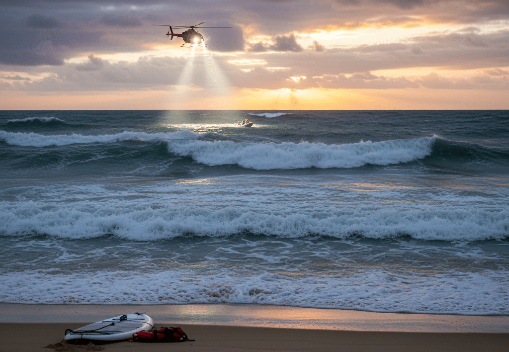 בזמן שאוסטין שחה על חייו, אמו ואחיו הקטנים – בו בן ה-12 וגרייס בת ה-8 – נותרו מאחור, מנסים לשמור על מורל גבוה בלב האוקיינוס בעודם נסחפים למרחק של 14 קילומטרים מהחוף. "שמרנו על אווירה חיובית, שרנו וצחקנו. התייחסנו לזה קצת כמו אל משחק, עד שהשמש החלה לשקוע והים נעשה סוער מאוד, הגלים היו מאוד גבוהים", תיארה ג'ואן את רגעי המתח בלב ים. כשהמחלצים איתרו אותם לבסוף, כעבור עשר שעות במים, האם כבר סבלה מקור קיצוני אך הביעה הקלה עצומה: "כל שלושת הילדים שלי איתי. שלושתם עברו את זה. זה מה שחשוב".