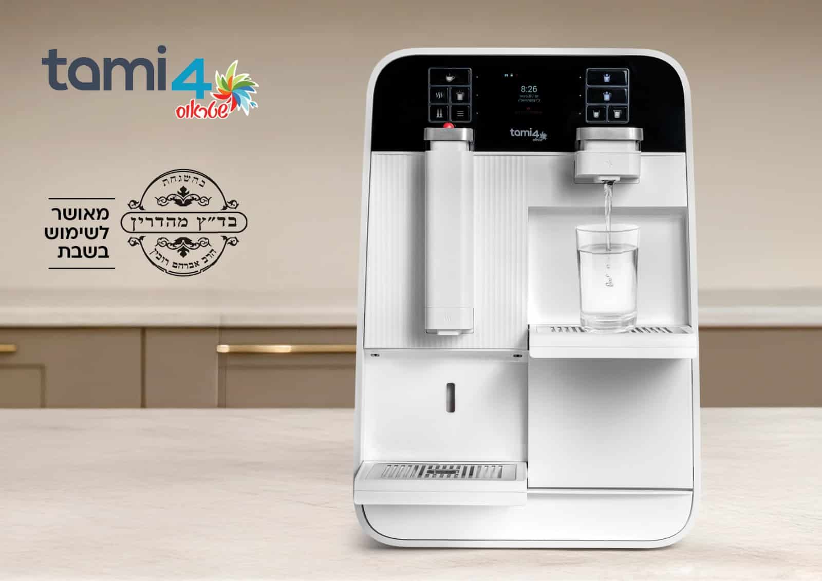 tami4shabbat הוא בר מים עם חותמת כשרות המוטבעת על בר המים שמבטיחה עמידה בכל הדרישות ההלכתיות המחמירות. המכשיר מציע הפרדה מוחלטת בין מים חמים לקרים, ובין מצב שבת לימי חול, עם מטהר מים ייחודי שאינו מחלל שבת.