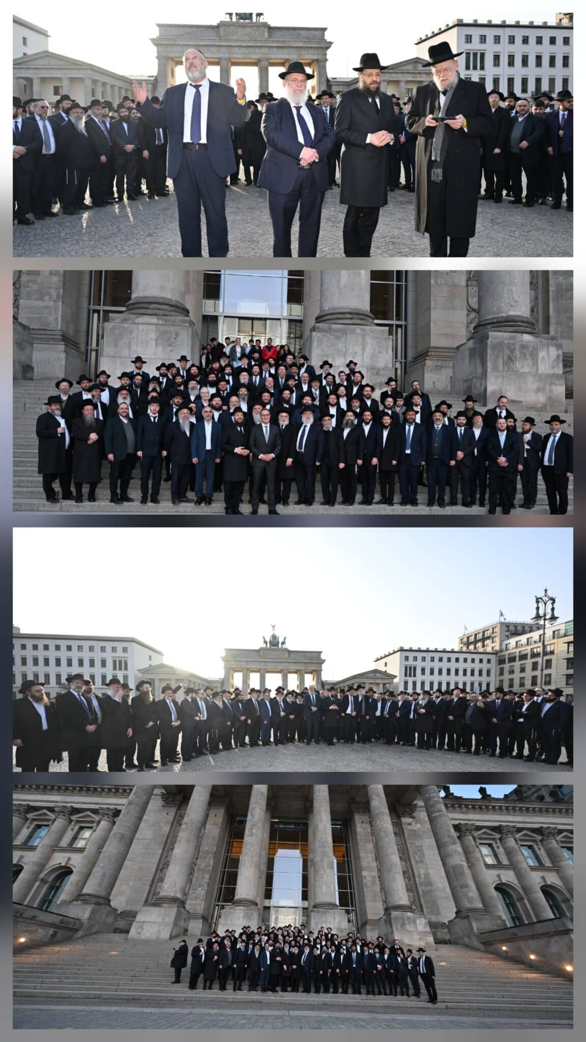 במסגרת הכינוס יצאה משלחת הרבנים לביקור מיוחד בבניין הפרלמנט הגרמני – הבונדסטאג – כאות הזדהות ותמיכה בקהילות היהודיות על רקע המלחמה והתגברות גילויי האנטישמיות ברחבי אירופה. לאחר הביקור הגיעו הרבנים גם לשער ברנדנבורג, אחד האתרים הסמליים ביותר בבירת גרמניה, ושם עמדו יחד ושרו בהתרגשות את שירת "אני מאמין", ביטוי לאמונה היהודית הנצחית שעמדה לעם ישראל גם בתקופות הקשות ביותר בתולדותיו.
