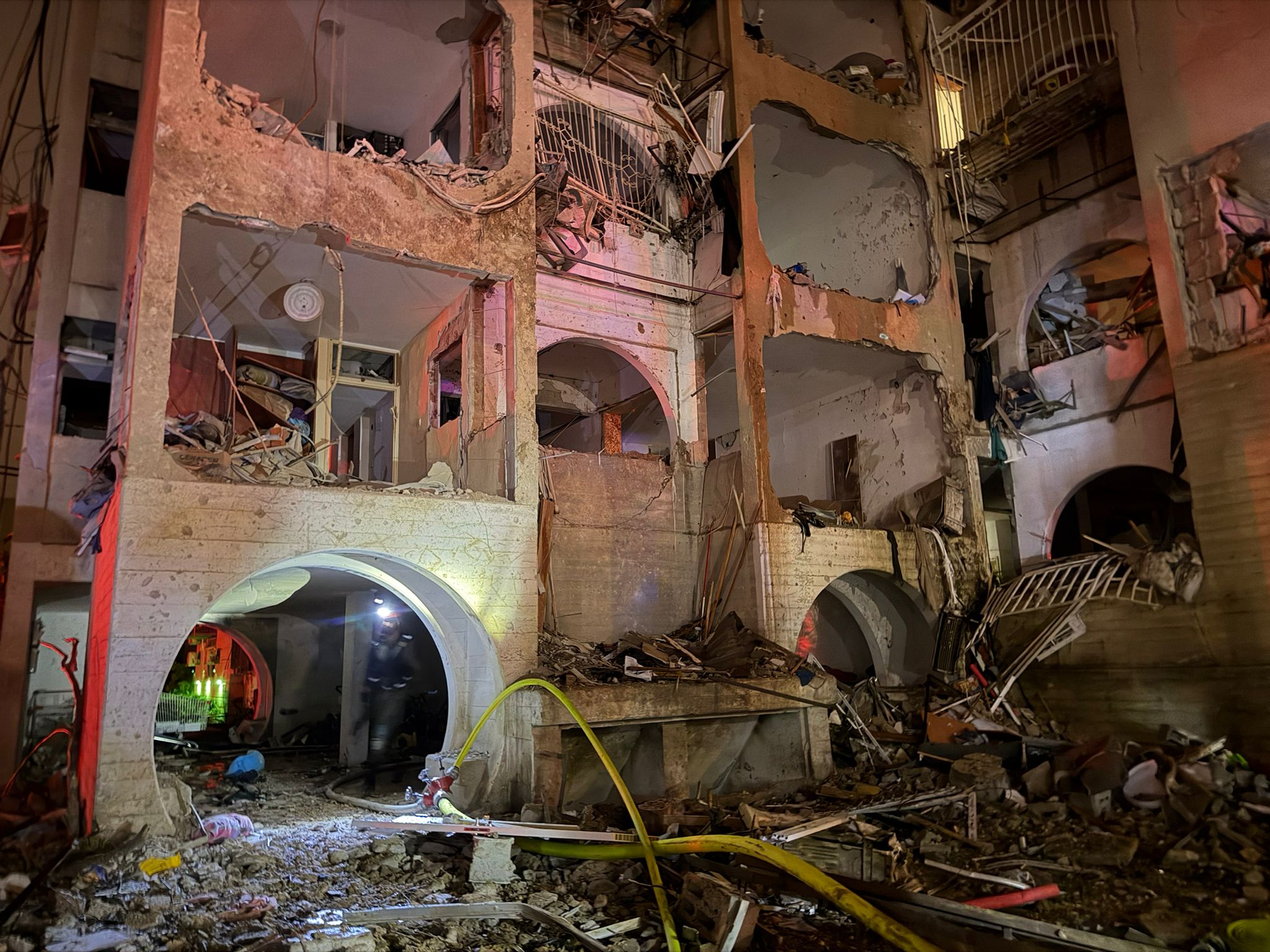 עשרות פצועים בדרגות פציעה שונות פונו הלילה לבתי החולים בעקבות פגיעה ישירה במבני מגורים בערד. כוחות הצלה וכיבוי פועלים בשעה זו בזירה תחת עשן סמיך בניסיון לאתר נעדרים ולכבות שריפות שפרצו במקום.