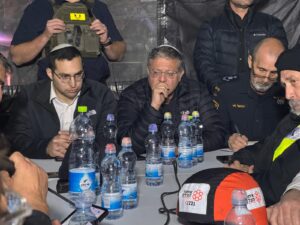 השר בן גביר: ״מנסים לפגוע בנו, צריך לזכור דבר אחד. אנחנו במלחמה, זה מלחמה שאנחנו חייבים להמשיך לכתוש ולנצח. אני מחזק את התושבים כאן. כנראה ששוב מוכח שמי שנמצא במקלט ובממ״ד – זה מציל חיים. לכן, אני קורא לכולם – תלכו למקלטים, לממ״דים. תשמעו להוראות. נמצא יחד איתי השר יצחק וסרלאוף, שהולך לחזק את המקום כאן ולהעביר תקציבים. אנחנו מחזקים את החוסן, מחזקים את התושבים, ומנצחים. חייבים לנצח, יש לנו מערכה היסטורית מול ראש השטן הזה שחייבים לנצח אותו. לא מפסיקים, ממשיכים עד לניצחון״.