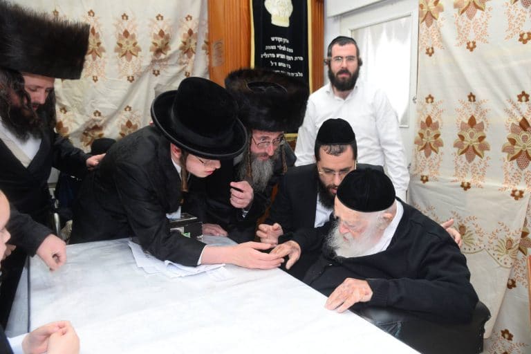 שבועיים לל"ג בעומר הגיע האדמו"ר מויז'ניץ השוהה בצפת - לציון רשב"י במירון, שם ערך קביעת מזוזה ולחיים • צילום: מירון און ליין