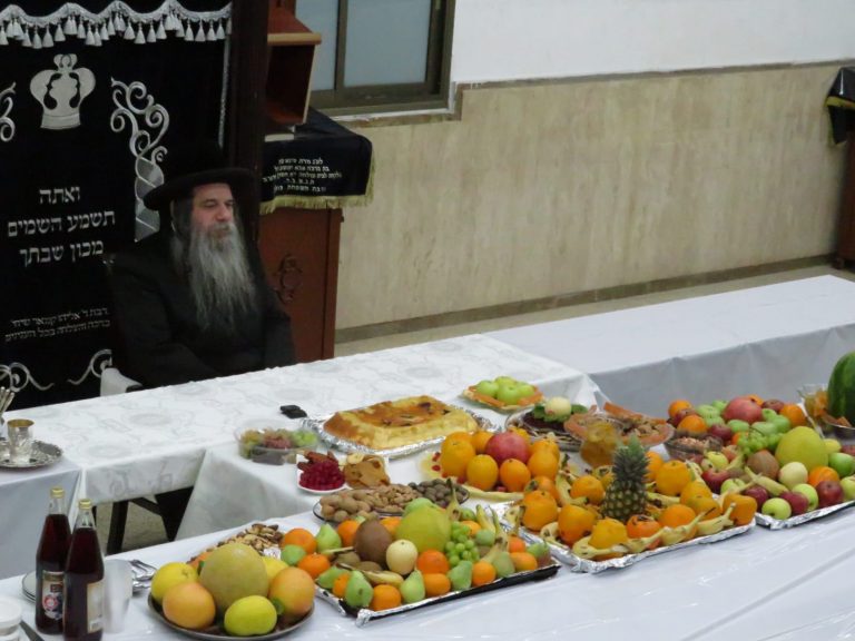 במתכונת מצומצמת: האדמו''ר מזוטשקא אמסנא בעריכת שולחן הפירות לרגל ט''ו בשבט • צילום: אריה וולקן