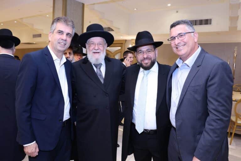 אמש התקיימה באולמי קונקורד בבני ברק שמחת נישואי בתו של הרב בן ציון (בנצי) נורדמן יו"ר מועצת העיר חדרה ויו"ר דגל התורה ומייסד ומנכ"ל רשת מדעים ויהדות . ראשי ישיבות, רבני ערים, שרים, חכי"ם ואישי ציבור עלו לברך ולאחל מזל טוב. צילום: יעקב כהן