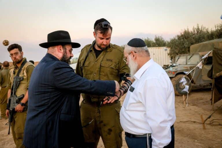 עשרות זוגות תפילין חולקו ללוחמים ברצועת עזה ע"י חבר מרכז רבני אירופה