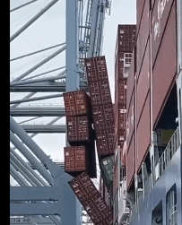 תיעוד של תאונת המכולות שהתרחש באופן נדיר בנמל לונג ביץ' ככל הנראה משילוב של חוסר תכנון נכון והעמסה שגויה של המכולות שגרמו לתוצאה הזו • צפו