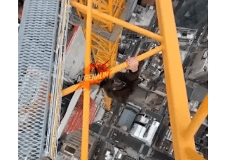 אקסטרים או שיגעון? אדם הרפתקן החילט לבצע פעלול כשהו נאחז במעקה של מנוף בגובה של מאות מטרים באוויר