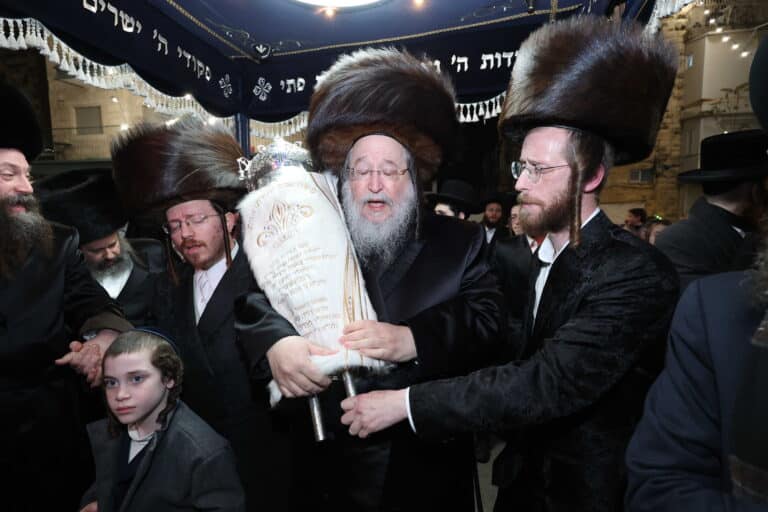 מעמד הכנסת ספר תורה להיכל בית המדרש הגדול רחמסטריווקה