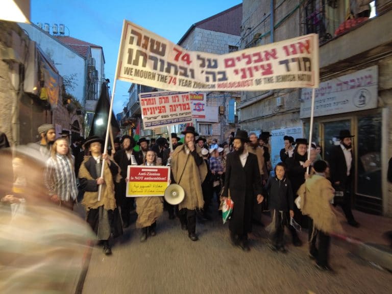 יקותיאל מושקוביץ מגיש גלריה של 'אירועי' יום העצמאות בקרב אנשי 'נטורי קרתא' בירושלים, החל ממנייני מנחה עם תפילת ויחל בבתי הכנסת של קהילות נטורי קרתא, דרך תהלוכות המחאה, הדגלים השחורים ודגלי פלסטין, ועד לשריפת הדגלים ברחבת מאה שערים • צפו בתיעוד