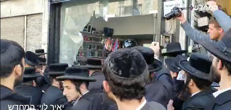 הפגנת ה'עדה החרדית' נגד חנות הסלולר יצאה משליטה: הדלתות נופצו