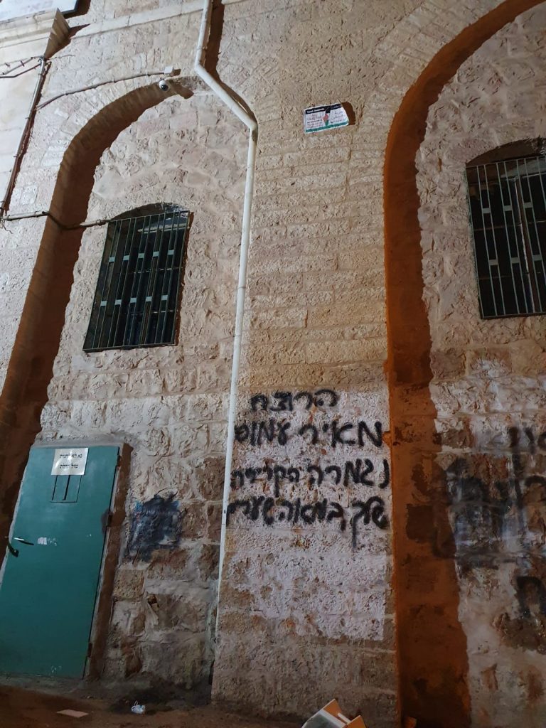 כוחות יס"מ וסמ"ג בפיקוד קצין בילוש ומודיעין של תחנת לב הבירה פשטו הלילה על שוק מאה שערים יחד עם צוותי העירייה כדי לקנות גרפיטי של דגלי פלסטין מהקירות, במקביל עצרו חשוד בתקיפת השוטר הקהילתי בשבוע שעבר • תיעוד