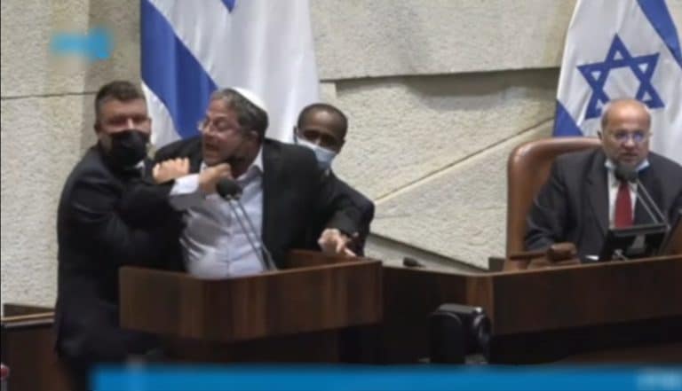 סגן יו"ר הכנסת הורה לסדרנים להוציא את הח"כ מהציונות הדתית מהמליאה לאחר שסירב לפתוח את נאומו במילים "אדוני יושב הראש" ובהמשך כינה אותו "מחבל" כמה פעמים. סדרני הכנסת עלו לדוכן וניסו להוריד את בן גביר מהדוכן שוב ושוב - והסערה נמשכה • צפו