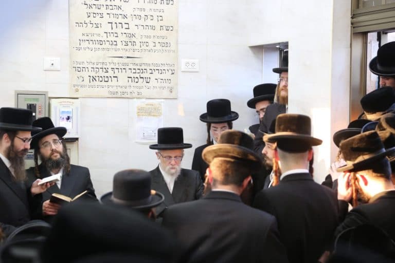 לרגל הייארצייט: האדמו"ר מסערט ויז'ניץ בתפילה בציון אביו בעל החכמת אליעזר מסערט ויז'ניץ • דוד קשת תיעד