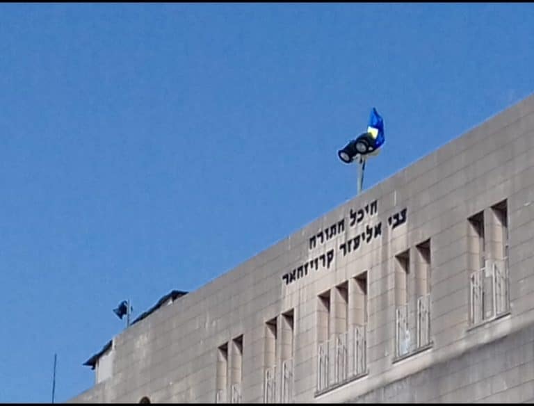 דגל אוקראינה הונף מעל ישיבת פוניבז'