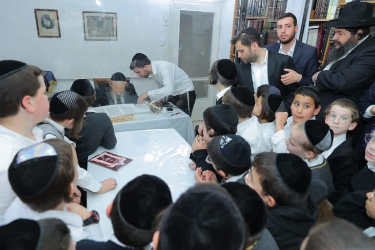 תיעוד: תלמידי ה'חיידר' נבחנו אצל מרן הגרי”ג אדלשטיין