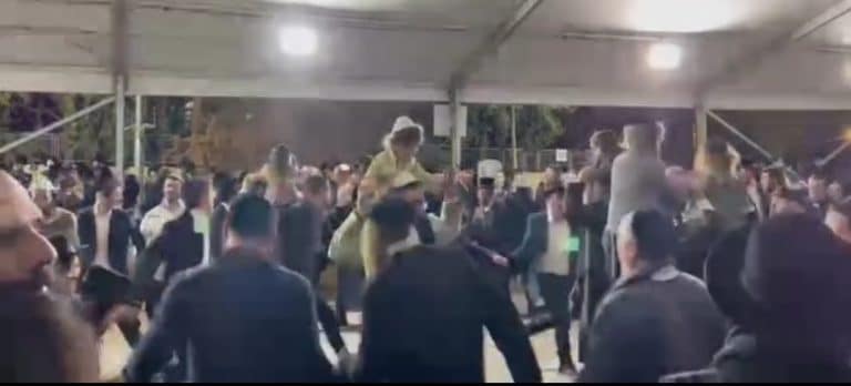 עשרות ילדי חלאקה ומתפללים לא וויתרו על ההגעה לציון הרשב"י במירון וחגגו בריקודים באוהל שהוקם במרחק עשרות מטרים מהציון עצמו שסגור ומסוגר