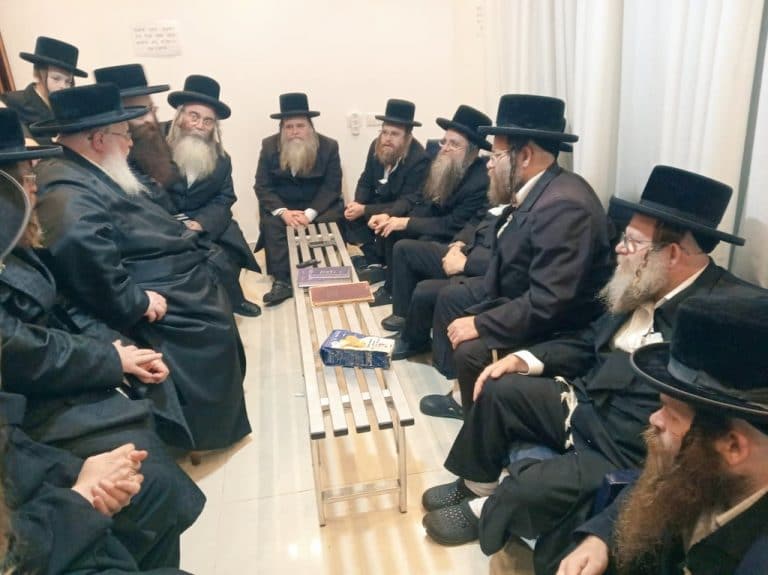 האדמו"ר מצאנז בלווית וניחום אבלים אצל האברך הרה"ח ר' אברהם לוי ז"ל מבית שמש שנפטר בתאונה באוקראינה