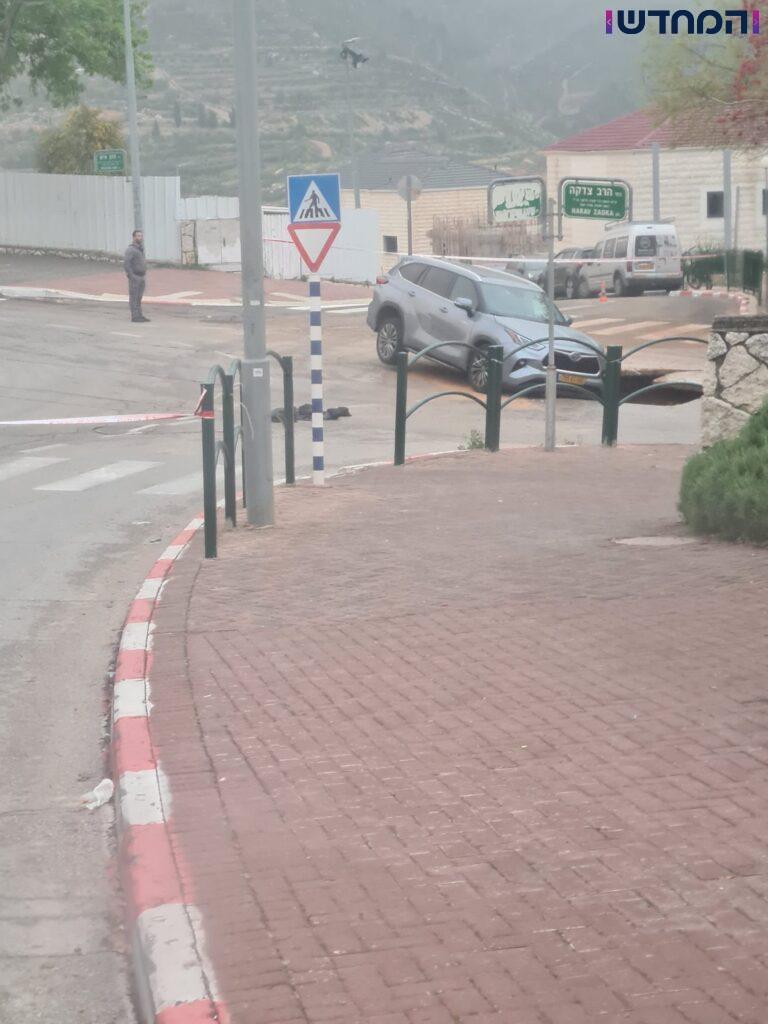 ביתר עילית: בולען נפער בכביש, רכב נפל לתוכו וחולץ