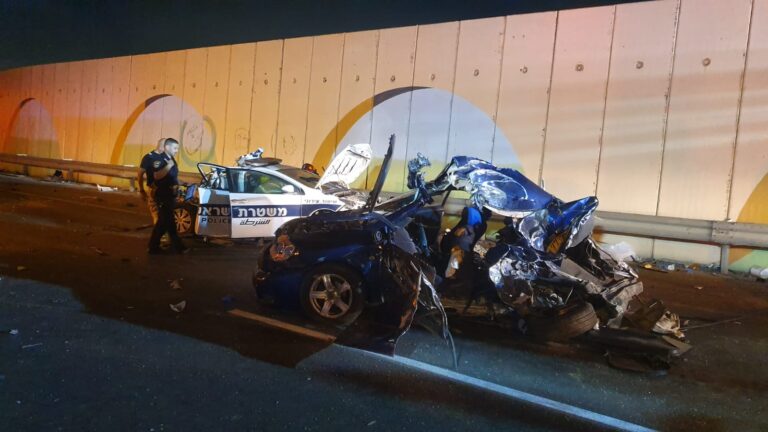 משאית התנגשה בניידת משטרה וברכב, נהג נהרג