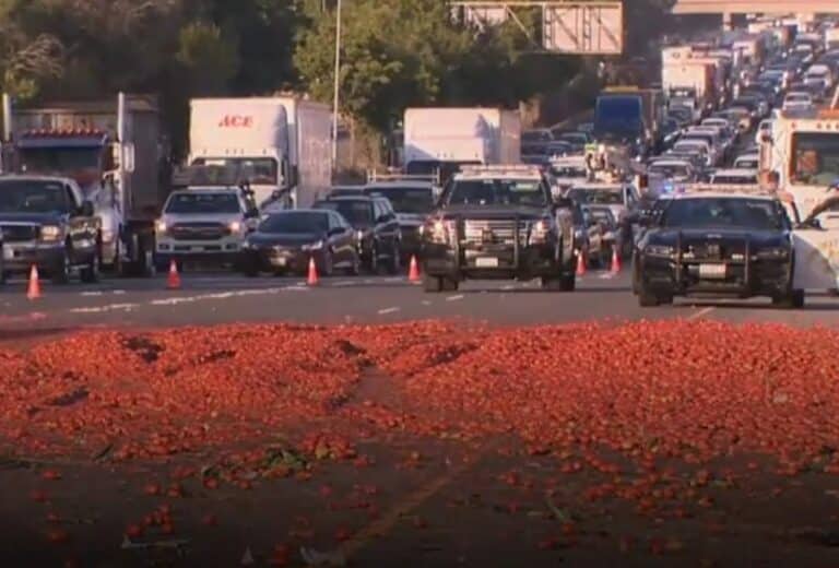 תאונת שרשרת בגלל… 150 אלף עגבניות בכביש