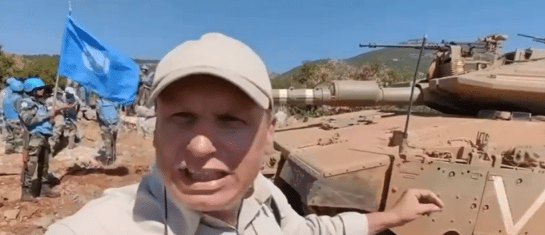 הזייה: כתב אל מנאר של חיזבאללה עלי שועייב תיעד את עצמו כשהוא במרחק נגיעה מטנק צה"לי סמוך להר דב כוחות יוניפי"ל מנופפים בדגל ונראה שלא • ממש עושים למנוע את ההפקרות בגבול