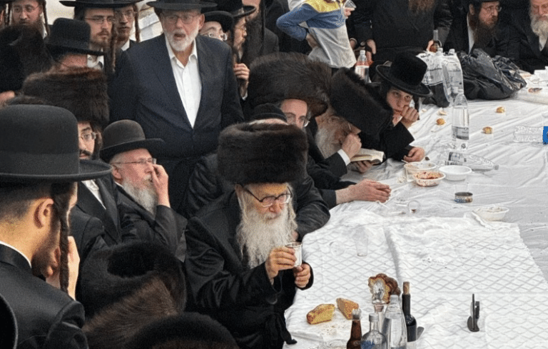 כמו מלאך: לאחר כמעט 50 שעות של צום ותפילות, הרבי מאמשינוב הוציא את הצום וערך את טיש צאת הצום במשך 12 שעות רצופות • הצלם שלומי כהן מספק הצצה נדירה