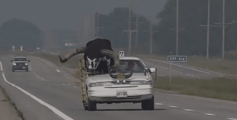 משטרת נברסקה, ארה"ב, עצרה נהג תמהוני שבמושב הנוסע שלו ישב נוסע לא צפוי, בעל קרניים עצומות • צפו בתיעוד