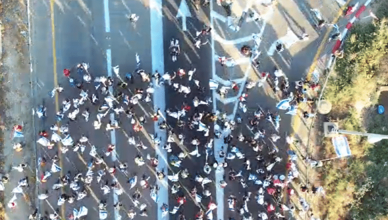 עשרות מפגיני שמאל צועדים בשעה זו לירושלים בדרך לנחשון • צלם המחאה אמיר גולדשטיין תיעד את הצועדים מתוך הרחפן