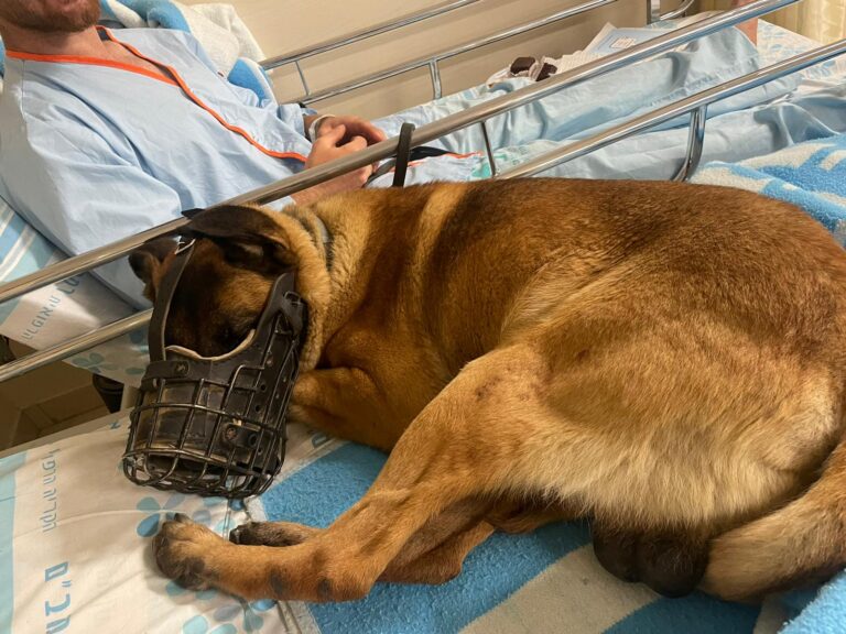 יחד עם לוחמי צה"ל ולוחמי מג"ב הפצועים שפונו הבוקר לרמב"ם מהקרב בג'נין, פונה במסוק עם הפצועים גם כלב של יחידת "עוקץ" שהיה עם הלוחמים בכלי שנפגע בג'נין • צפו