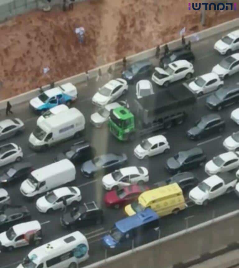 מפגינים מהשמאל חוסמים כבר מעל שעה את נתיבי איילון •צפו בתיעוד בו ניתן לראות ניידת טיפול נמרץ מתקשה לפלס את דרכה בין מפגיני השמאל