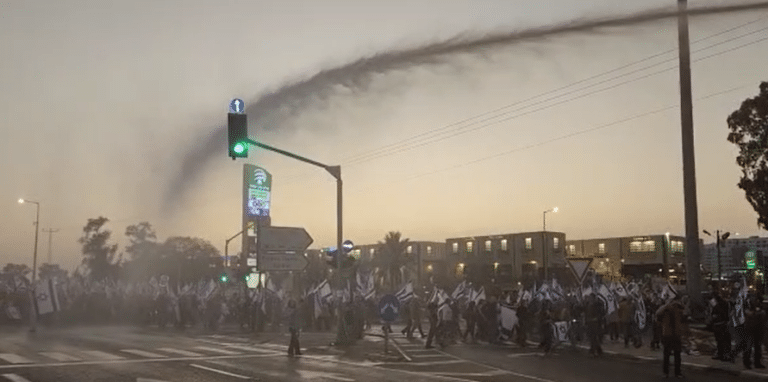 מסירים את הכפפות: המשטרה פועלת תוך שימוש באמצעים, לפיזור מאות המוחים בדרך השלום, וזאת לאחר שלא נענו להוראה של קצין משטרה להתפנות. צפו