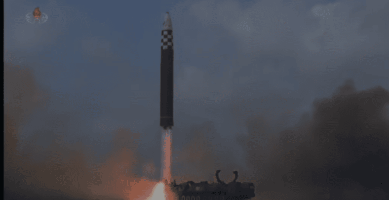 צפון קוריאה חשפה תיעוד של שיגור הטיל הבליסטי הבין-יבשתי מסוג HWASONG-17 בלילה הקודם, שנחת במים הכלכליים של יפן