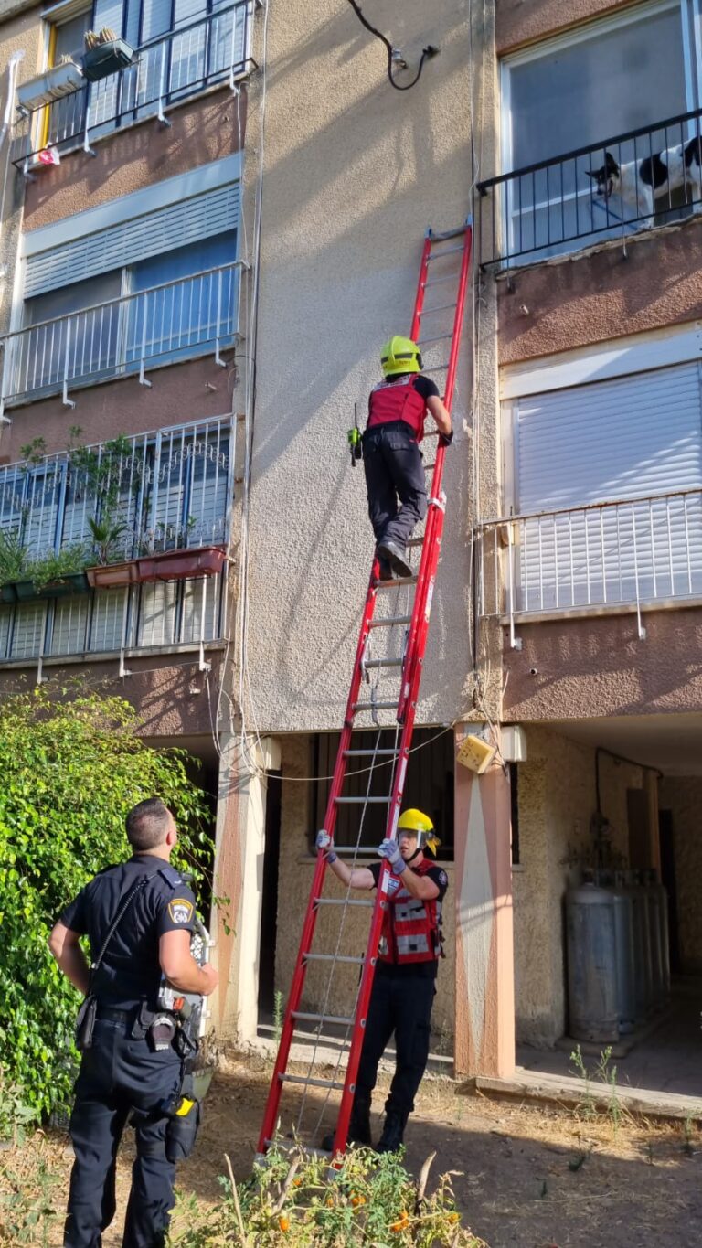 לוחמי האש מתחנת קרית ביאליק פעלו לחילוץ כלב אשר ננעל בן תריסי הדירה וסורגים. הלוחמים רב סמל חיים סניור ורב כבאי עופר איסקוב הציבו סולם התמגנו ונקטו את כל אמצעי הזהירות ואז טיפסו לקומה השניה פתחו את חלון הדירה והכלב נכנס לבית