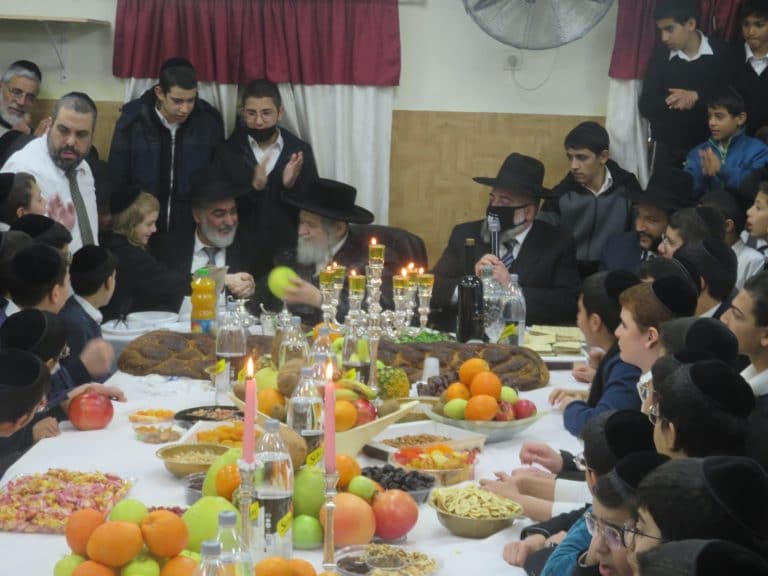 האדמו"ר החסידי ערך טיש ט"ו בשבט בת"ת הספרדי • צפו