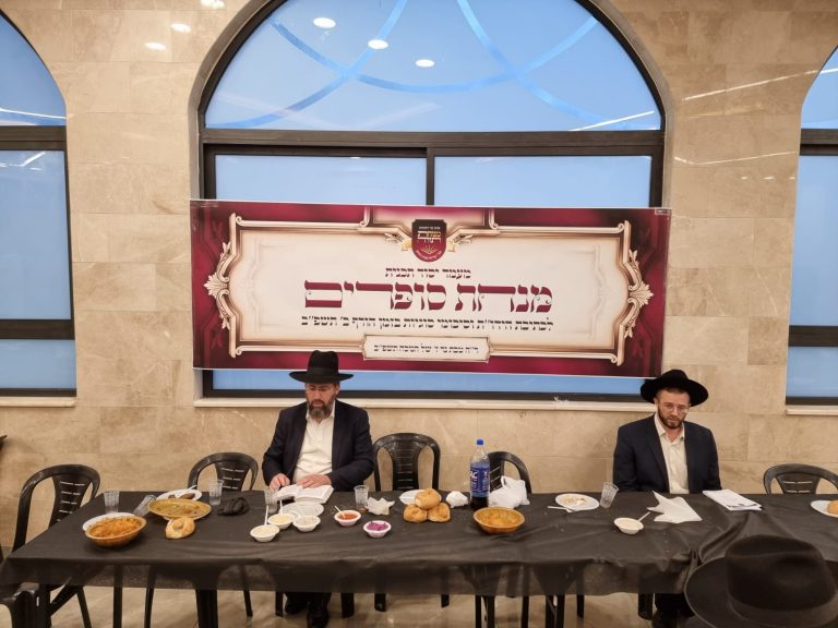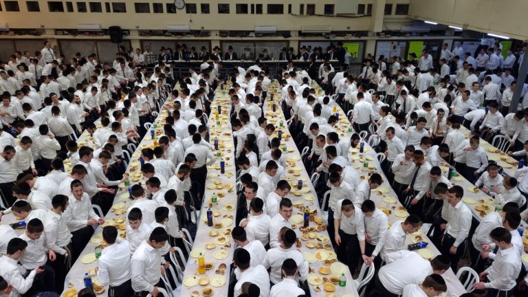 אלפי בחורי ואברכי ישיבת פוניבז' השתתפו במסיבת החנוכה סביב שולחנות ארוכים בראשות מרנן ורבנן ראשי הישיבה