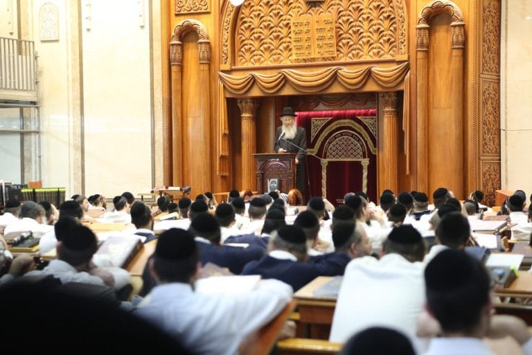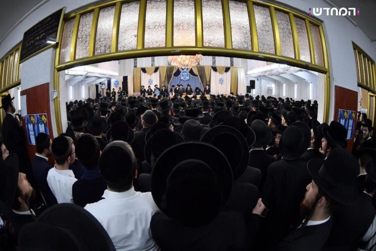 מעמד כ"א כסלו - יום הצלת בעל ה'דברי יואל' זי"ע, בבית המדרש הגדול של סאטמר בני ברק, בראשות ראש הישיבה הגרח"צ מייזליש שליט"א, בהשתתפות רבנים ומאות מבני הקהילה ובחורי הישיבה • צילום: יהושע פרוכטר