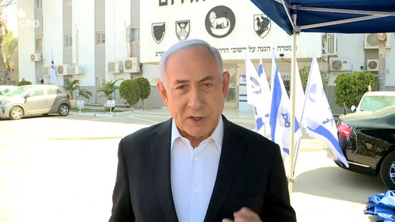צפו בנתניהו מזהיר את חמאס "דמם בראשם"
