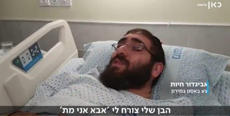 נהר שוטף של אנשים, הבן הקטן זועק 'שמע ישראל'. הגיע שוטר וצרח עליי לתת לו ידיים. התחננתי שיוציא את הילד": אביגדור חיות, שנפצע במירון ובנו ידידיה בן ה-13 עדיין נעדר, שיחזר את רגעי האסון בהילולה, בריאיון לכתב כאן חדשות שרון עידן - צפו