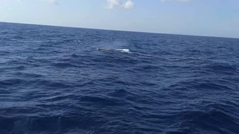 תצפית נדירה מול חופי ישראל היום: לווייתן ממין ראשתן נראה מול חופי נהריה, במרחק של 580 מטרים מהחוף. אורכו כשישה מטרים ונראה כי מדובר בפרט צעיר. צילום: ע.כ. שמאע