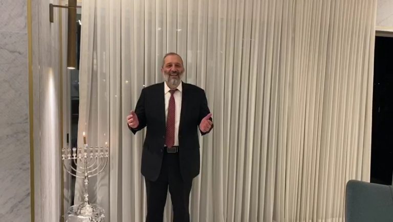 וידאו: הדלקת נר ראשון של חנוכה בחצר חסידות תולדות אברהם יצחק