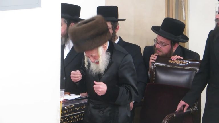 תיעוד נדיר: הרבי מסקולען זצ"ל בשירה לאחר הדלקת נר חנוכה