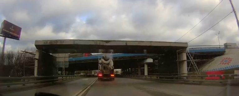 בשבוע שעבר נסע אזרח אוקראיני לתומו בכביש, מצלמת הרכב תיעדה כיצד משאית שנסעה תחת הגשר הרעידה את הגשר, המשאית חלפה ללא פגע, בעל הרכב נהרג עם בתו בת ה-3