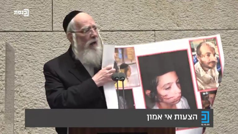 ‏סוער במליאה: ח"כ ישראל אייכלר שלף פוסטר המראה את האלימות המשטרתית כלפי חרדים, והאשים כי הממשלה שלחה שוטרים להכות ילדים חרדים: "מי שצריך להתבייש הם שליחי הממשלה, הפועלים בשם חוקי החירום מימי הבריטים" • צפו