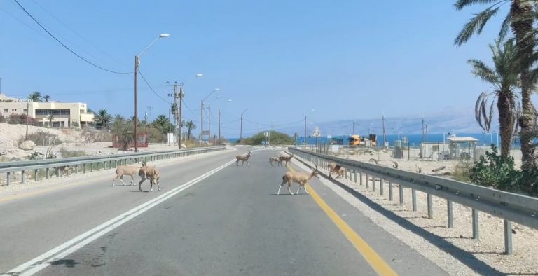 בחסות הסגר: עדר יעלים תועד חוצה את כביש 90