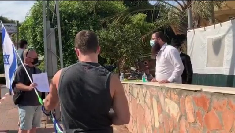 ‏ההסתה מחלחלת: מפגין נגד נתניהו באבן יהודה מבקש מהחבדניקים שרוצים לזכות עם ישראל בנטילת לולב ע"פ כל הכללים, לעזוב את המקום מהסיבה: "כל מקום שאתם נמצאים אתם מדביקים"