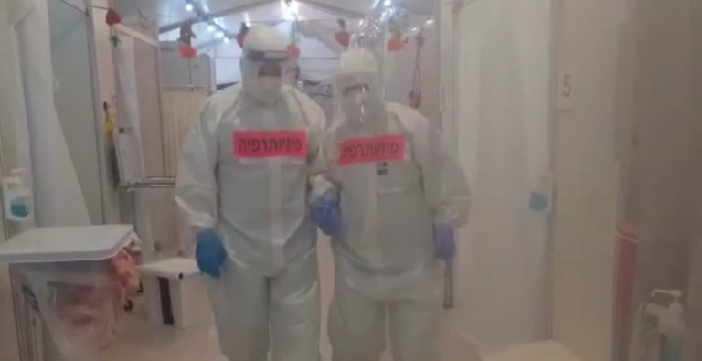 תיעוד חביב מתוך מחלקת הקורונה של שערי צדק. צוות הפיזיותרפיה מנסה לשמח את החולים בימי החג - צפו