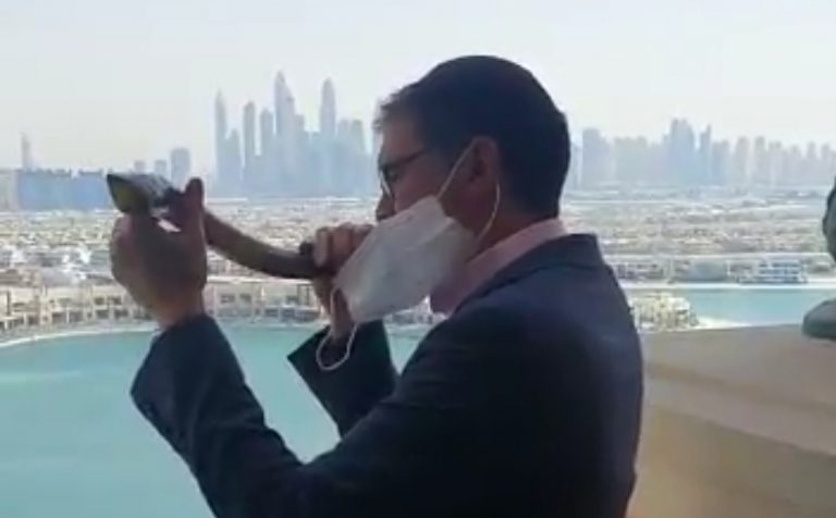 צפו: אחרי הסכם השלום; הרב של איחוד האמירויות תוקע בשופר