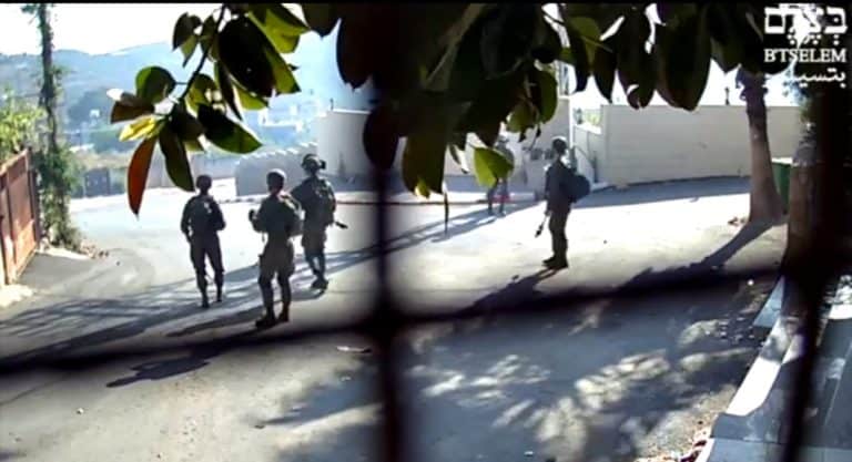 בסרטונים שהפיץ ארגון השמאל רואים חייל מנקב גלגלי רכב וחייל אחר משליך מה שנראה כמו רימוני גז אל עבר הבתים.